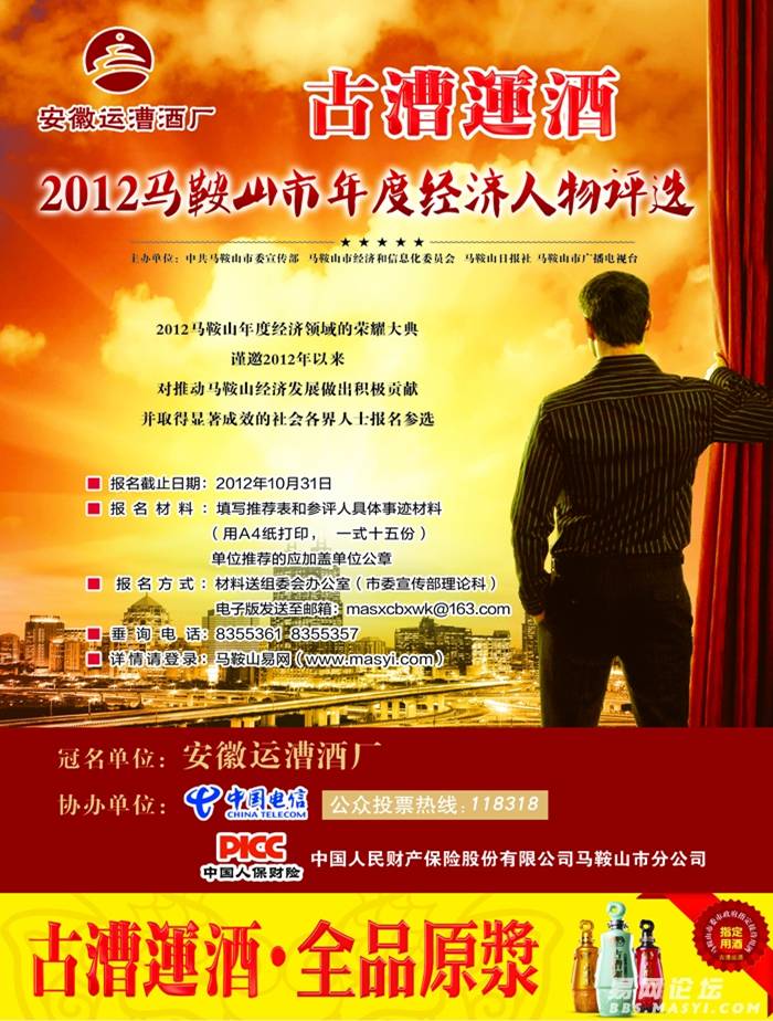 評選參與2012馬鞍山市年度經濟人物評選條件: